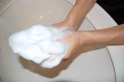「ジェントルウォッシュ(石けん)」をネットで泡立てる。
